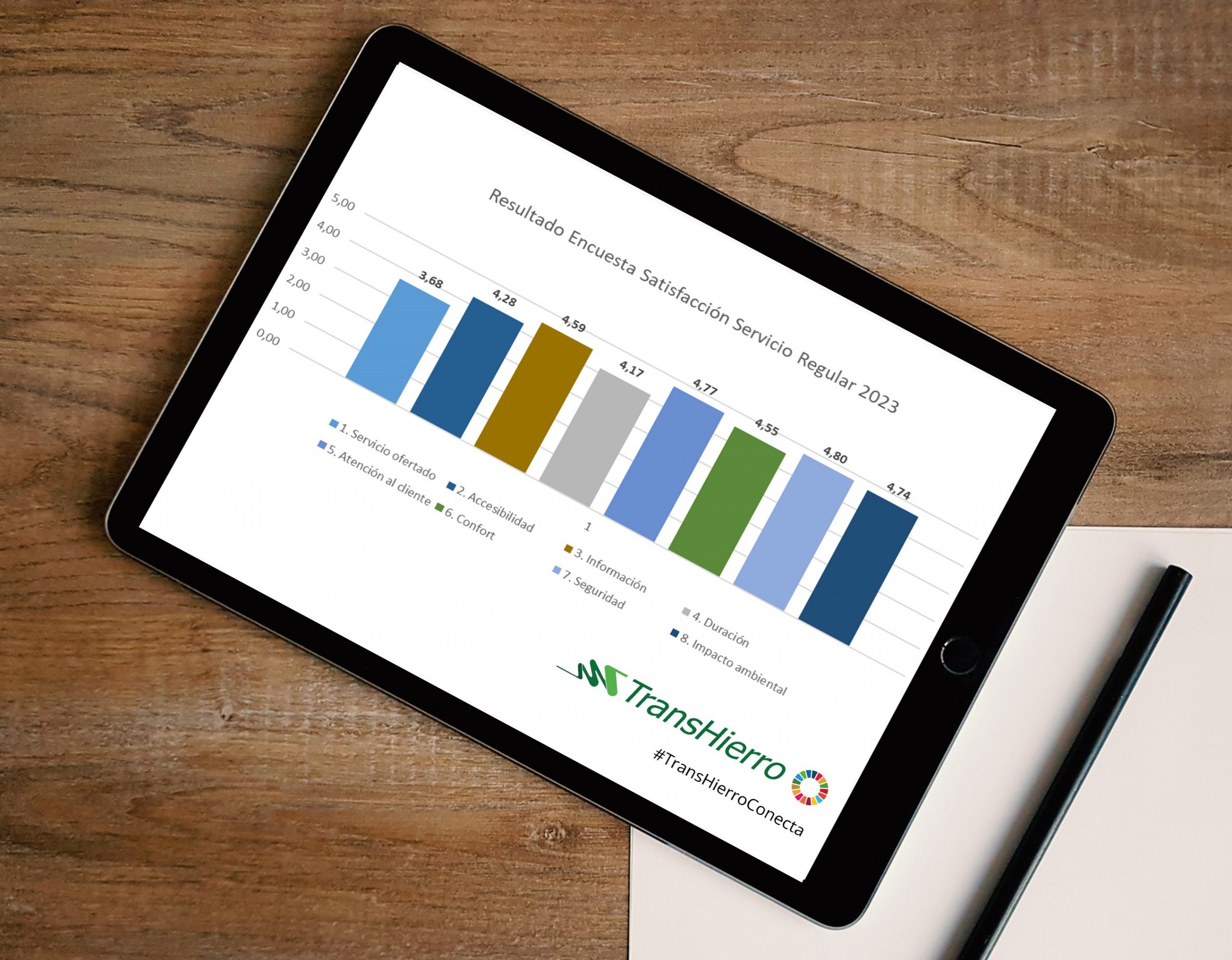 Durante el año 2023, el servicio de transporte regular de El Hierro transportó a 338.121 pasajeros, experimentando un nuevo máximo histórico, un 23% más que el año anterior. En cuanto a la satisfacción de los usuarios, se ha realizado una encuesta de satisfacción a una muestra de usuarios que nos devuelve una valoración media de 4,83 puntos sobre un máximo de 5, superando por 16 décimas la puntuación del año 2022. Además, el 100% de los usuarios encuestados recomendaría nuestra entidad como servicio de transporte.